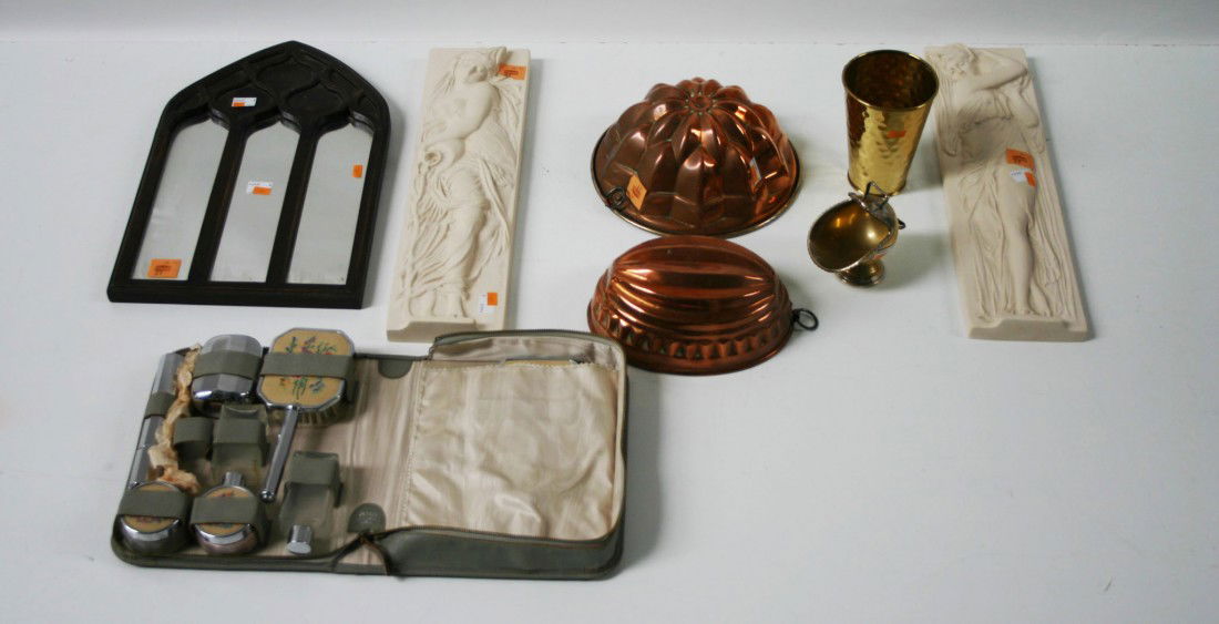 Browse a record of outcomes from past auctions, including sale prices and unsold items.Signed Goose Motif Topped Ceramic Tea Kettle 1989(2) ANTIQUE CAST IRON CORNBREAD PANSA collection of miscellaneous Art Pottery Items, co14 pcs. Revere Ware Stainless CookwareLARGE COLLECTION VINTAGE SILVER PLATED TABLE WARELARGE COLLECTION VINTAGE SILVER PLATED TABLE WAREVintage Cabbage Shredder, Washboard, Irons & moreToy Cookware - Revere Copper Clad, Betty Ware(Lot of 2) Chinoiserie plated tea kettle on stand &A mixed selection of assorted china, glass and other items, etc.A selection of plated ware to include a tea service,A lot of a Fisher sterling rimmed ebonized tray together with a silverplate hollow ware, including aA selection of plated ware.Toy Cookware - Revere Copper Clad, Betty WareChild's iron Kitchenware, includes Griswold cast ironA box of plated ware to include a wine jug, a cutTea Pot, Mottle Grey Black Handle. Granite Ware Box 2 - Photo 8SINGLE-SIDED PORCELAIN NECTAR TEA SIGN.(lot of 4) Mostly Sheffield plate hollow ware items: aTwo vintage tea kettlesEnglish and Other Toby Type Mugs & MoreVINTAGE & ANTIQUE CAST IRON & COPPER POTS (3)Lot of Copper Kitchen Items RevereToby Type and English Mugs & More