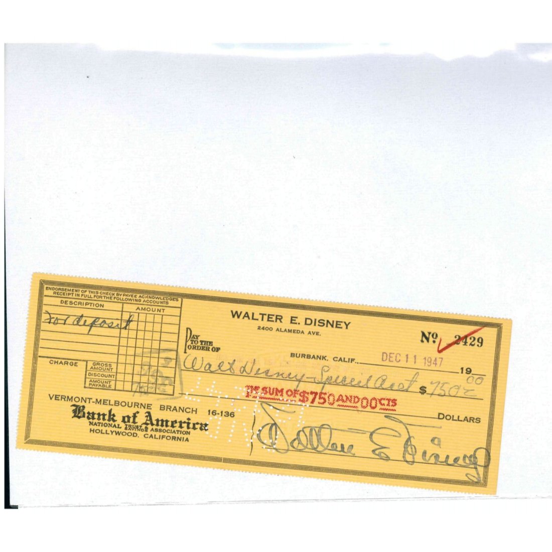6162 past auction results for "walt-disney-signed-check"