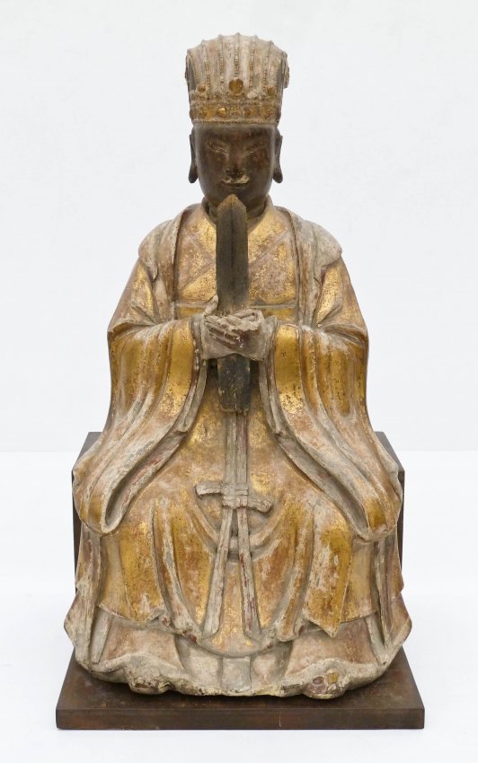 ![A seated statue of Guanyin in the Ming Dynasty with fine cast copper tires gilded: Ming Dynasty Finely cast copper tire gilt free Guanyin seated statue [Style] Ming Yongle Year Shi [Details] This statue of Guanyin with a high cloud bun has a gentle and soft face, a quiet and gracefu](https://p1.liveauctioneers.com/7963/405761/225344651_1_x.jpg?height=310&quality=70&version=1770200509)
