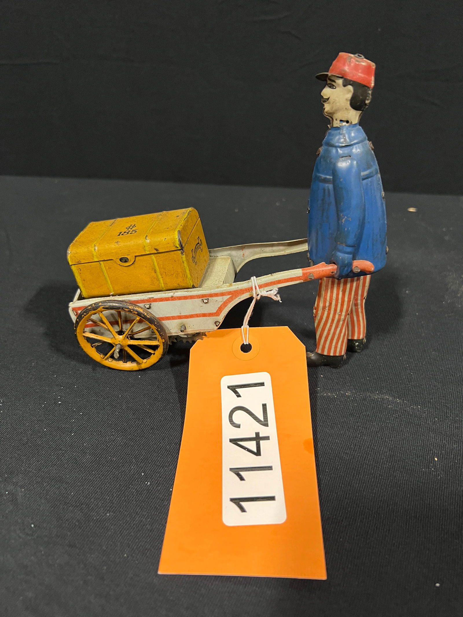 ![Wind-Up Skating Clown TIn Toy w/Orig. Box. 1960 [189579]: Skating Clown wind up toy by TPS Japan. Comes in orig. box The toy is in near new condition . No scratches, or chips, paint is vibrant and complete. Tested and working as it should. Known as “dead s](https://p1.liveauctioneers.com/2699/350655/191367634_1_x.jpg?height=280&quality=70&sharpen=true&version=1731192959&width=280)