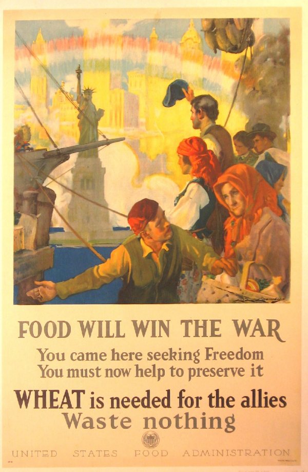 ![1 piece. Color Lithographic World War One Poster.: 1 piece. Color Lithographic World War One Poster. Food Will Win The War. You Came Here Seeking Freedom; You Must Now Help To Preserve It." New York: Rusling Wood Litho, [1918]. Designed by Charles E.](https://p1.liveauctioneers.com/197/12730/3706196_1_x.jpg?height=280&quality=70&sharpen=true&version=1179849460&width=280)