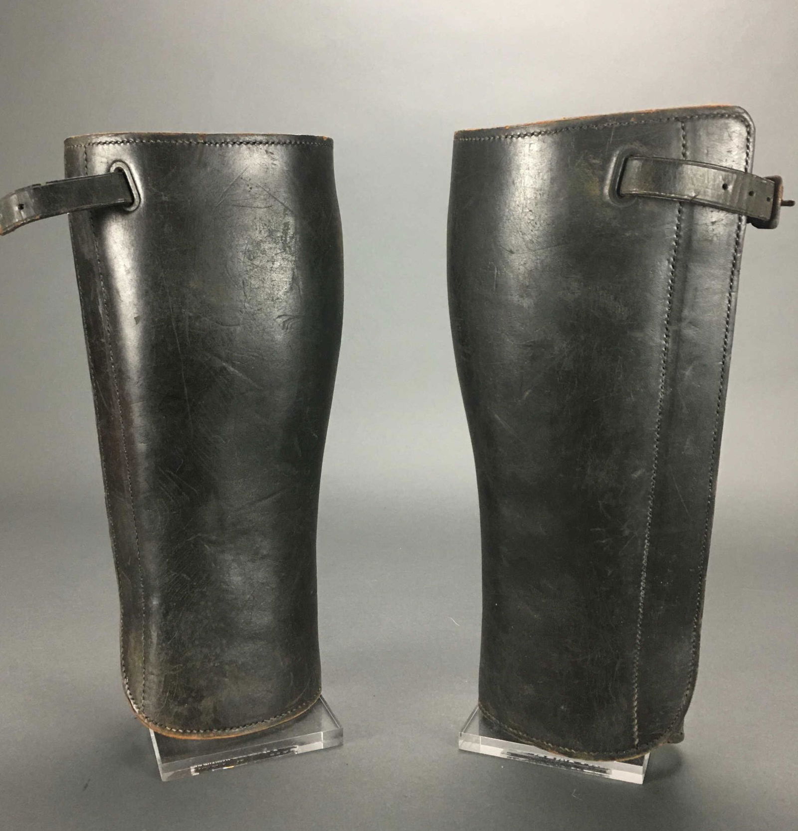 ![WWI Black Leather Gaiters/Puttees.: [Uniforms] WWI black leather gaiters/puttees. For artillery or cavalry. Both stamped 8015 on interior. 11 3/4" tall._x000D_ Condition Good. Wear from use, rubbing and light scratches. Evidence of mold](https://p1.liveauctioneers.com/179/164076/82830472_1_x.jpg?height=280&quality=70&sharpen=true&version=1584125955&width=280)